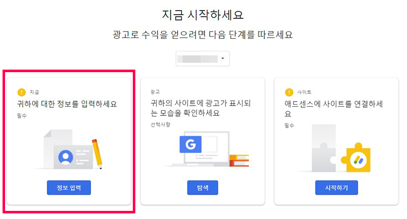 이제 세 번째 배너를 클릭하기 전에 티스토리에서 애드센스를 연결하기 위해 몇 가지 작업을 해야 합니다.